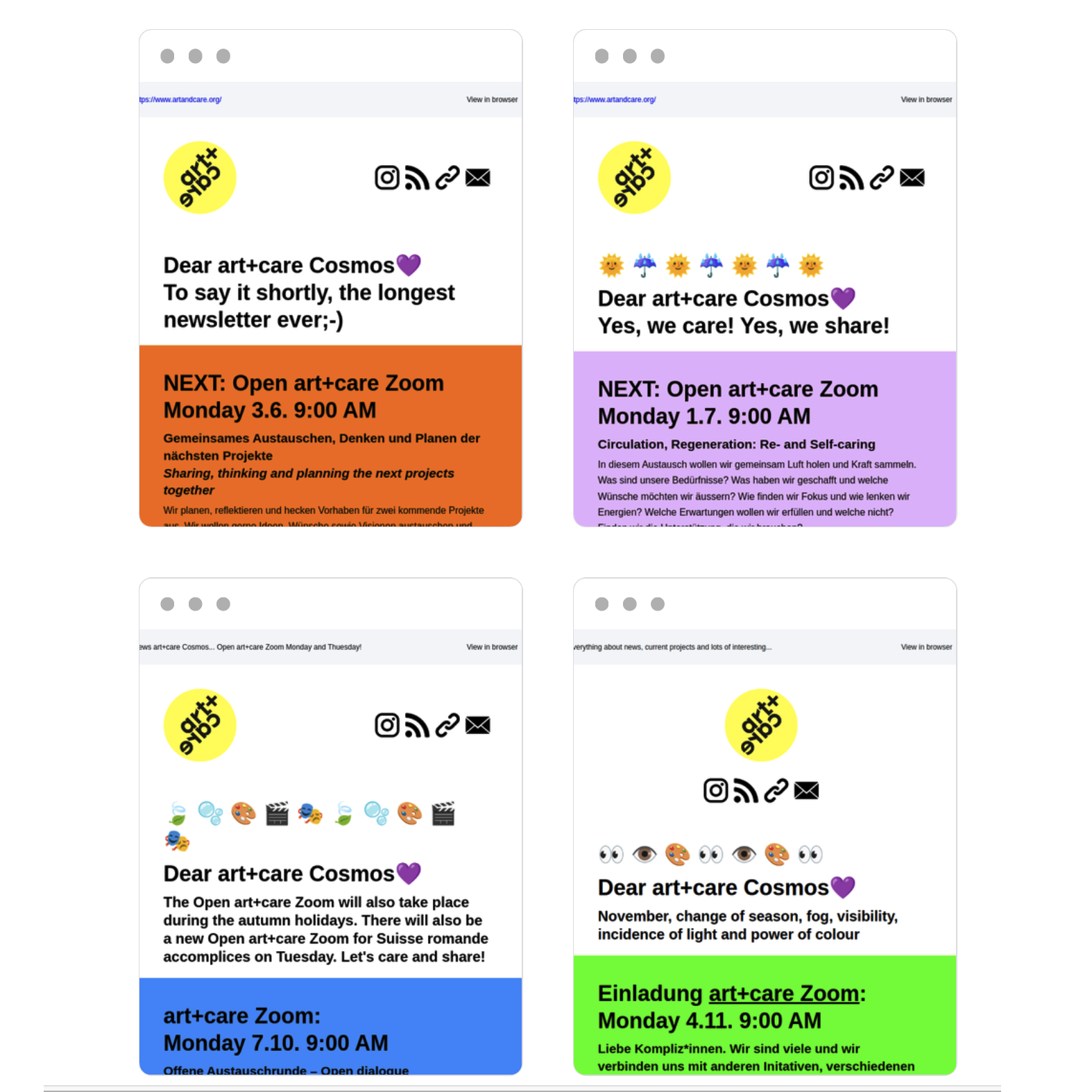 Join in! Updates, Events, Info, Tools, Previews, art+care Zoom Link…